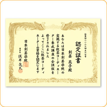 修了時に、「紅茶コーディネーター」資格が取得できます。この資格は、本格的な紅茶の知識と技能を身につけたことを証明するものです。認定証書を授与することで、あなたの実力を保証。