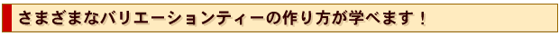 紅茶は、ミルクやフルーツなどさまざまな素材との相性が抜群です。この講座では、ミルクティーやアイスティーなどの基本のバリエーションから、ハーブティーやフルーツティー、さらにはリキュールを使った紅茶まで、多彩なアレンジが学べます。