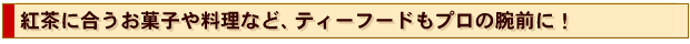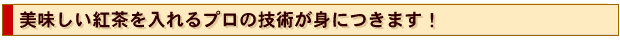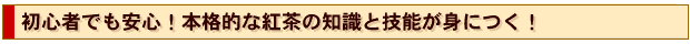 お湯の注ぎ方などの基本から、ダージリン、アッサム、ニルギリなどの茶葉の見分け方や選び方、紅茶の品質を鑑定するティーテイスティングまで、美味しい紅茶を入れるためのプロの技術が身につきます。この講座で学べば、“味がぜんぜん違う!”と実感できるほどの、美味しい紅茶が入れられるようになります。